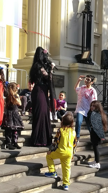 E così, giunta alla fatidica sera, sono andata al Municipio a sentire un elettrizzante e goticheggiante concerto di organo e sintetizzatori (nel City Hall di Melbourne c’è l’organo più grande di tutto l’emisfero australe, smisurato e bellissimo), al termine del quale sono passata alla toilette delle signore per infilare il mio travestimento prima di dirigermi verso casa, convinta che tutti facessero lo stesso. La mia dolce metà mi accompagnava nei panni di un malriuscito ma comunque bellissimo ibrido tra Dracula e Satana, senza peraltro crederci troppo – per entrambi bastava il mio entusiasmo.